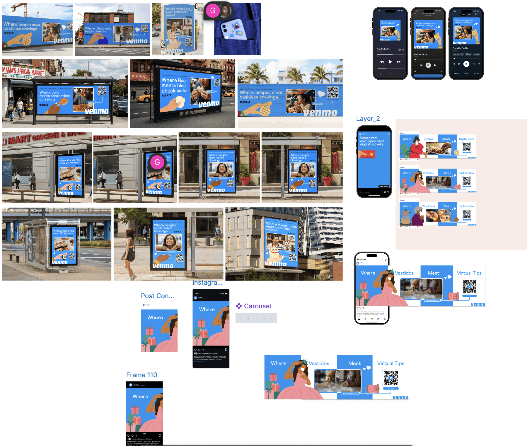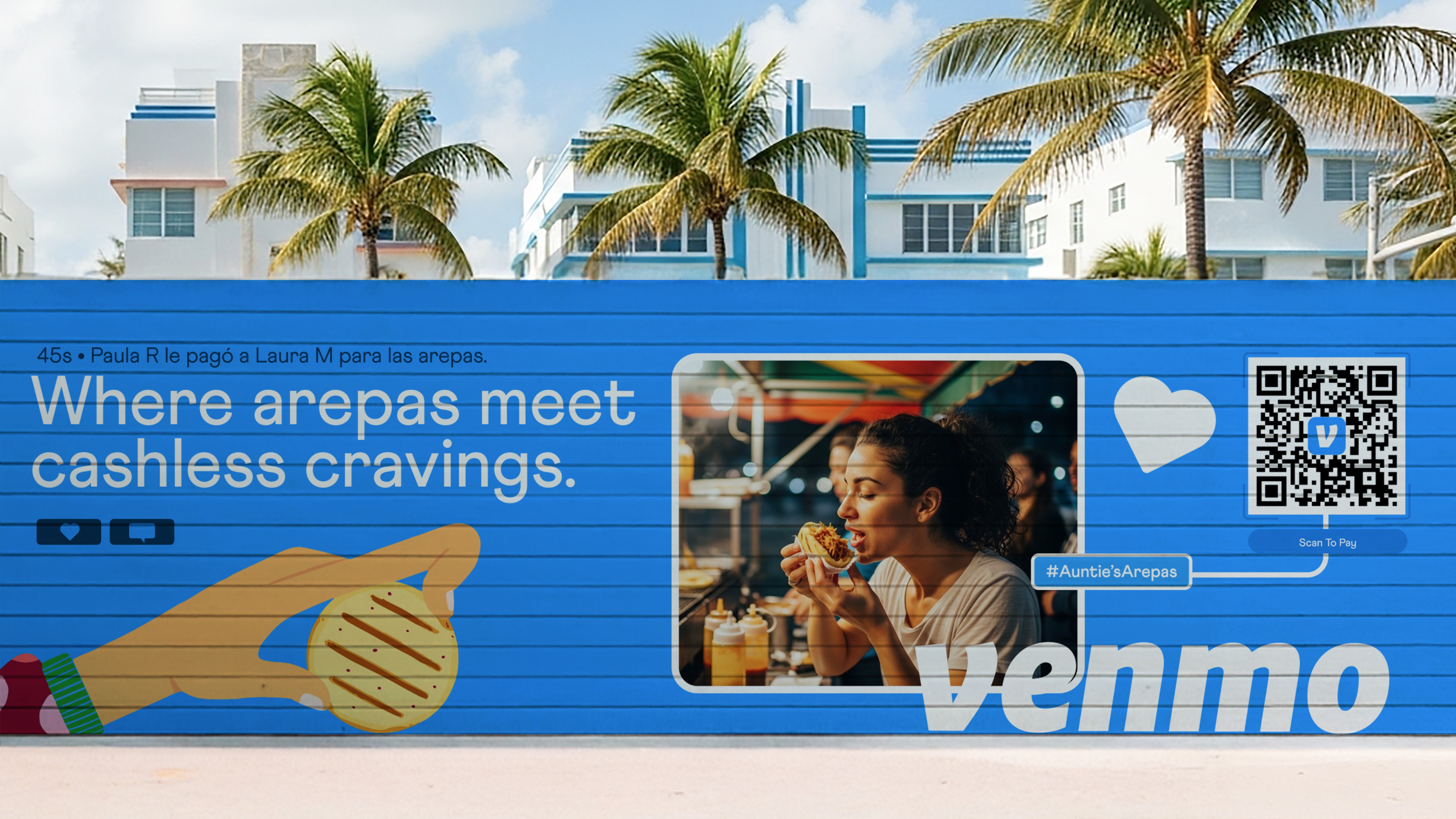This OOH series blends cultural illustrations, real photography, and QR-powered interaction. A white connecting line visually links the photo to the QR code, symbolizing how Venmo bridges real-life moments with seamless digital payments. The line acts as a simple, intuitive guide that reinforces connection, flow, and ease across every design.